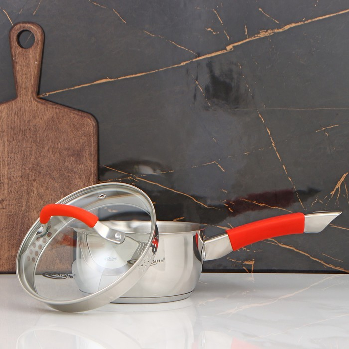 Ковш «Аврора», 1,6 л, d=16 см, капсульное дно, стеклянная крышка, индукция
