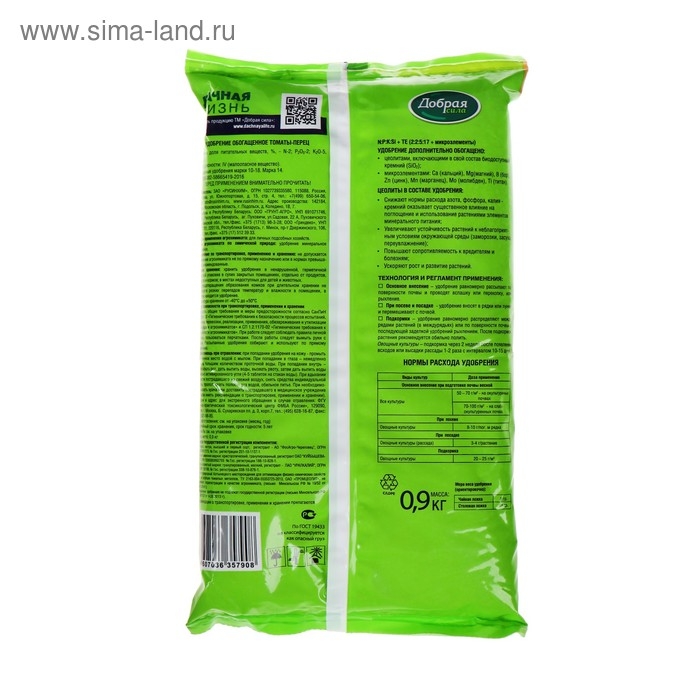 Удобрение открытого грунта Добрая Сила "Томаты-Перец", пакет, 0,9 кг