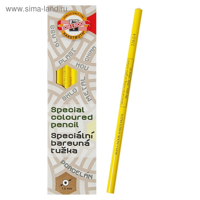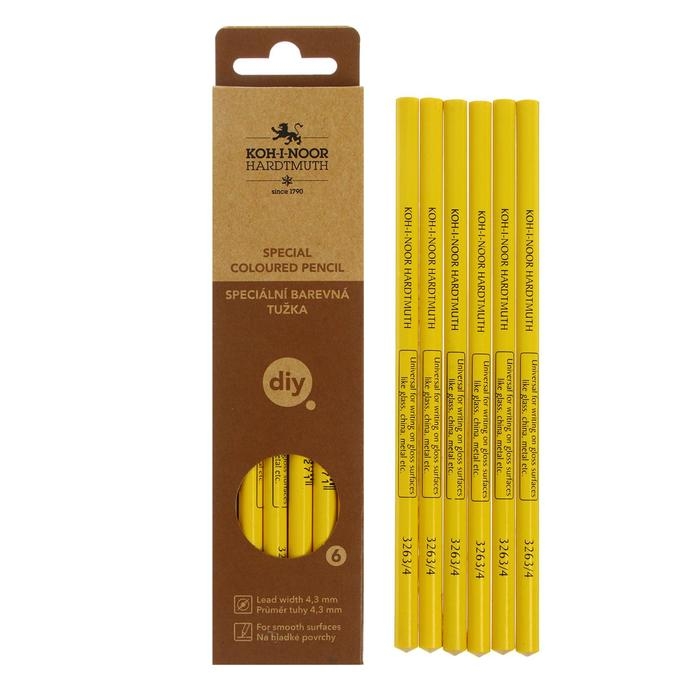 Карандаш незаточенный 4.3 мм, Koh-I-Noor 3263/4, по стеклу, металлу, пластику, жёлтый, L=175 мм