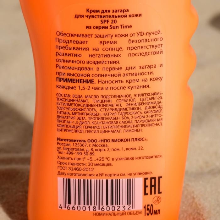 Крем для загара «Биокон» солнцезащитный SPF 40, 150 мл