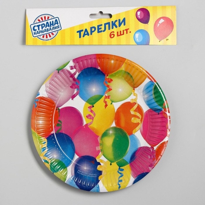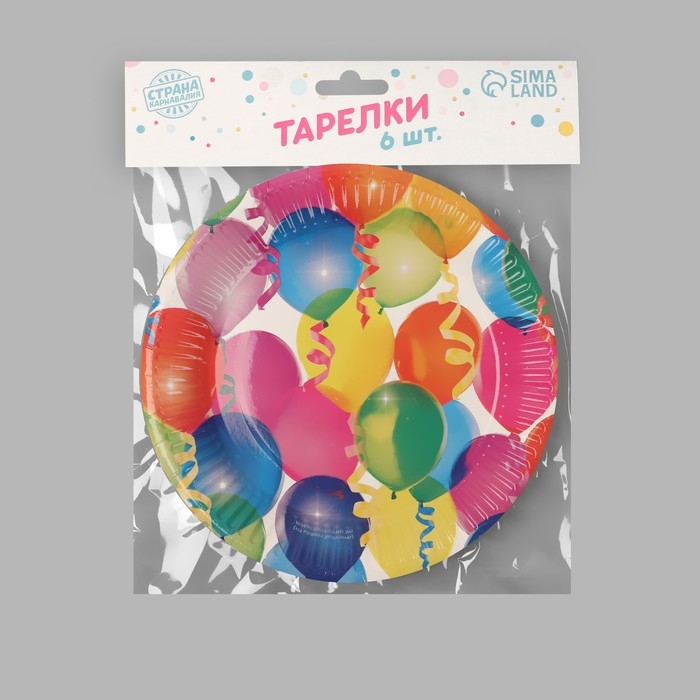 Тарелка одноразовая бумажная "Воздушные шарики" (набор 6 шт) 18 см