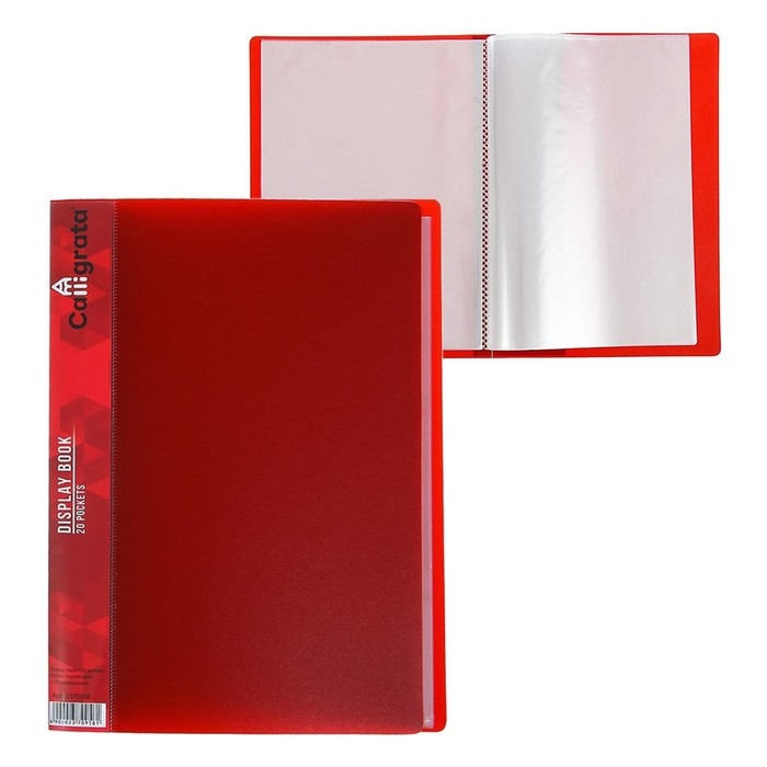 Папка с 20 вкладышами А5, 500 мкм, Calligrata, 9 мм, карман на корешке, красная