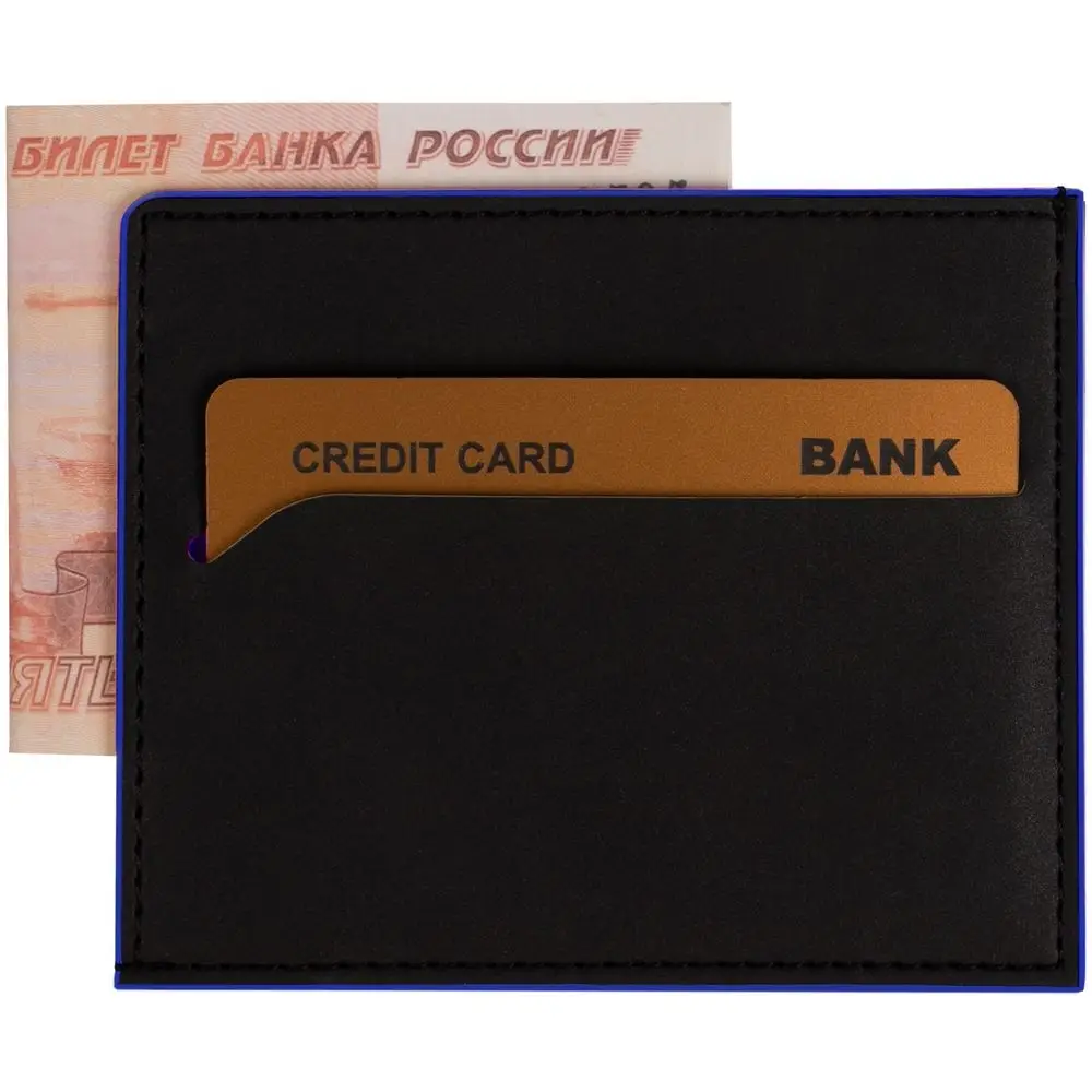 Серия личных аксессуаров Multimo — удачный вариант функционального персонального подарка. Приятная на ощупь искусственная кожа, продуманный дизайн, лаконичная контрастная отделка и выигрышная цветовая гамма.Чехол выполнен из материала Soft Touch Pearl, черный АА, дополнен окрашенным срезом края и внутренним карманом из цветного картона. Имеет 4 отделения для кредитных карт и 1 отделение для купюр.