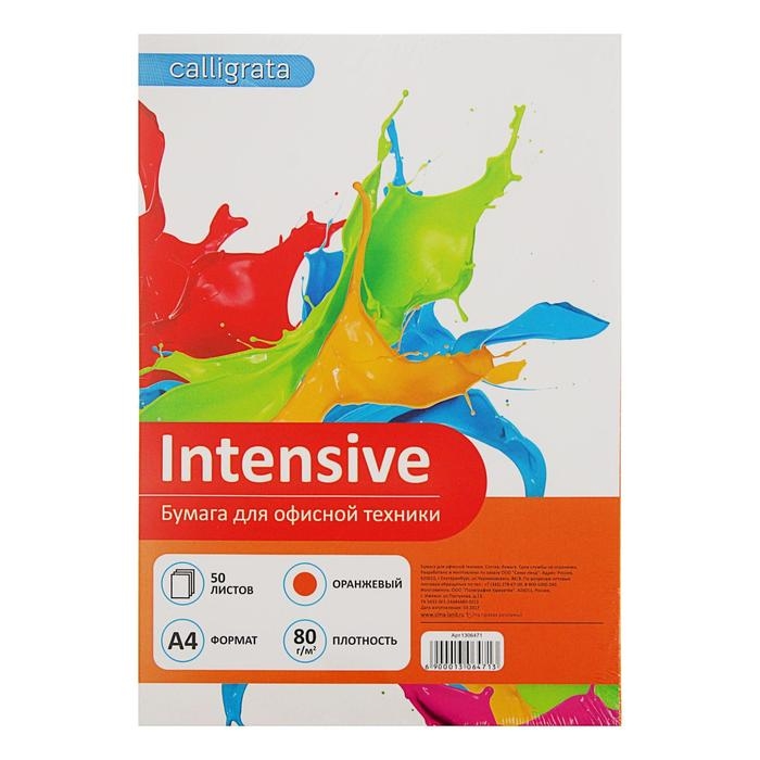 Бумага цветная А4, 50 листов Calligrata Интенсив, оранжевая, 80 г/м²