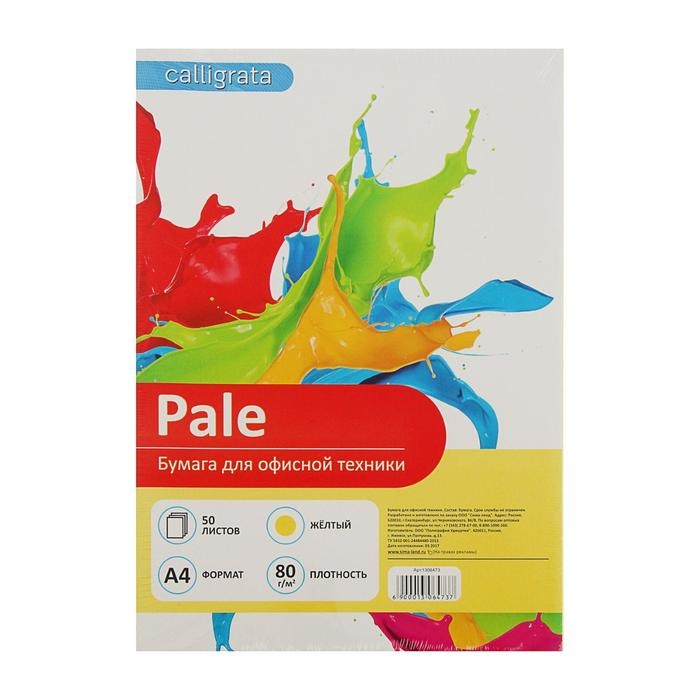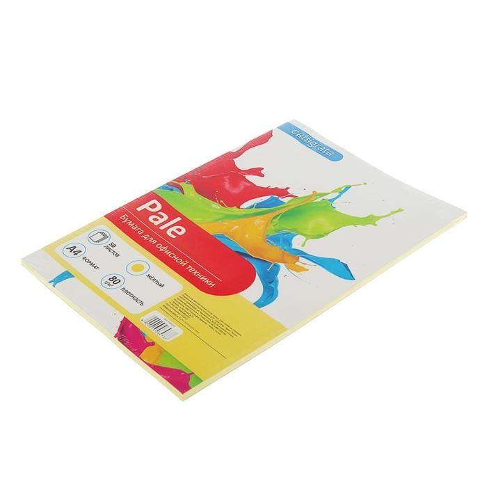 Бумага цветная А4, 50 листов Calligrata Пастель, жёлтая, 80 г/м²