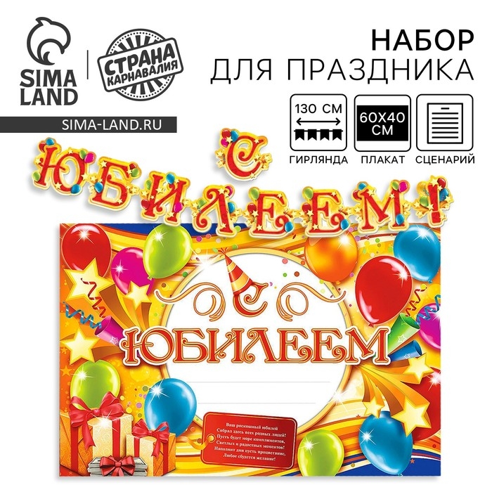 Гирлянда, плакат и сценарий для проведения праздника "С юбилеем!"., 250 гр/кв.м