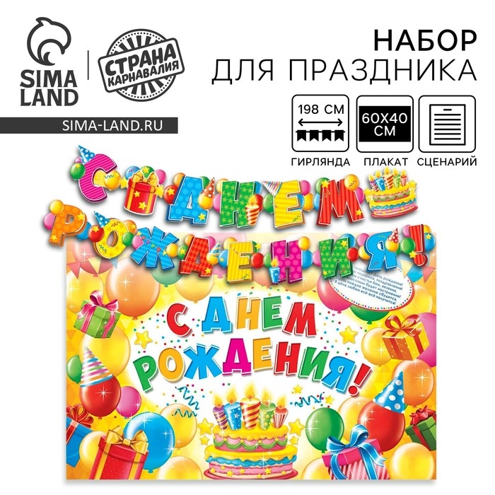 Гирлянда, плакат и сценарий для проведения праздника "С днем рождения!"., 250 гр/кв.м