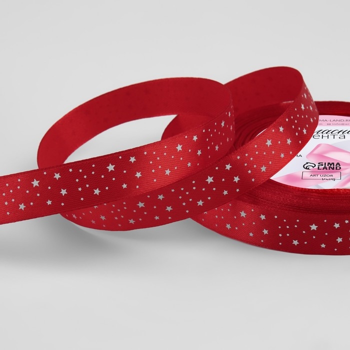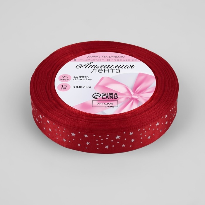 Лента атласная «Звёзды», 15 мм × 23 ± 1 м, цвет красный №026