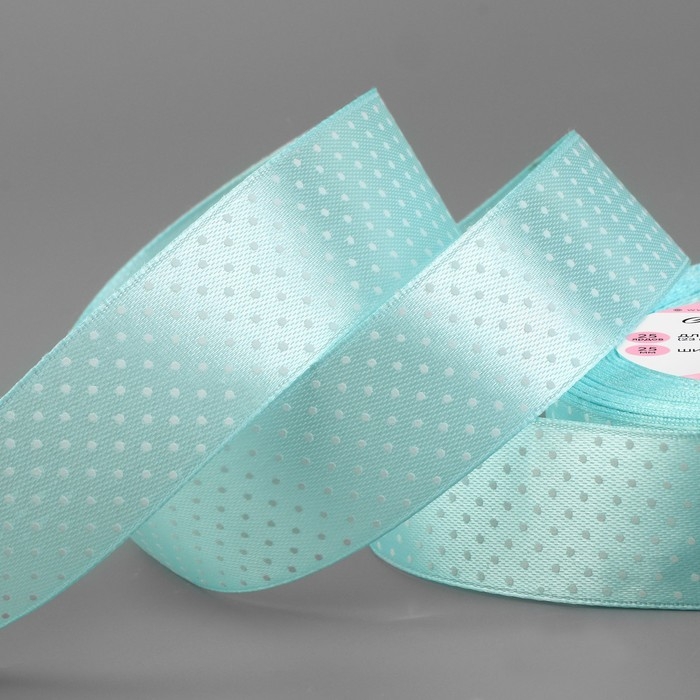 Лента атласная «Горошек», 25 мм × 23 ± 1 м, цвет голубой №103