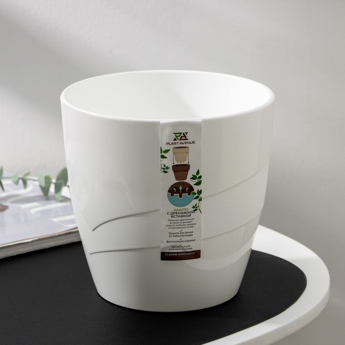 Кашпо для цветов со вставкой «Грация», 2,8 л, цвет белый