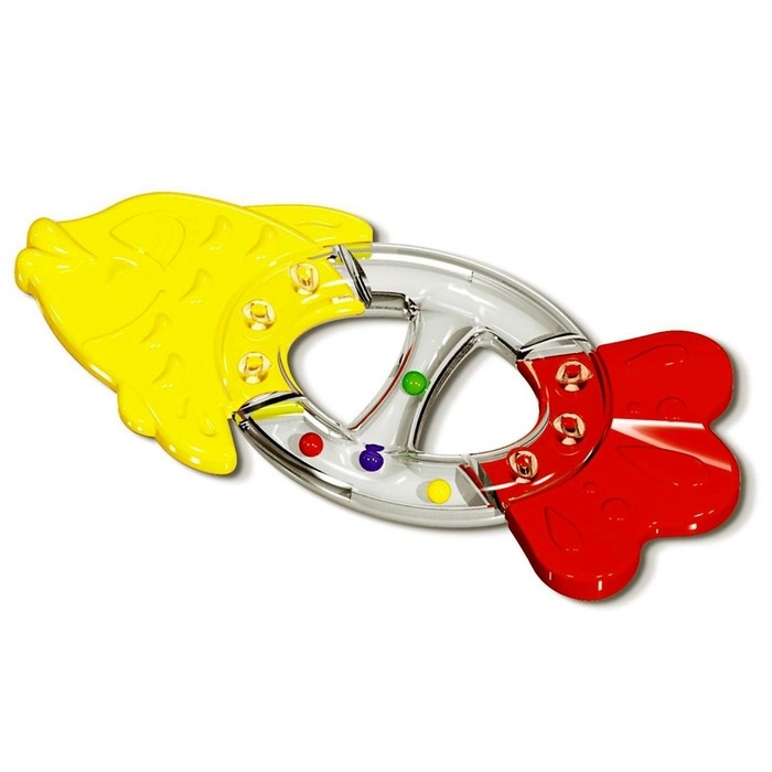 Малыши часто отказываются от обычных прорезывателей, потому что они им просто надоедают. Но если прорезыватель совмещен с погремушкой, то такая игрушка станет любимой для младенца надолго. «Рыбка» поможет снять боль в дёснах малыша и поспособствует его развитию.