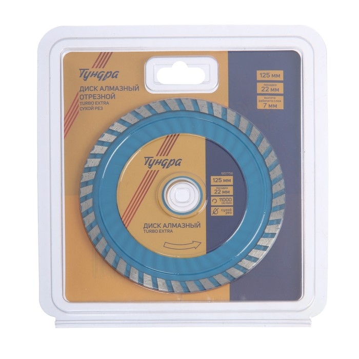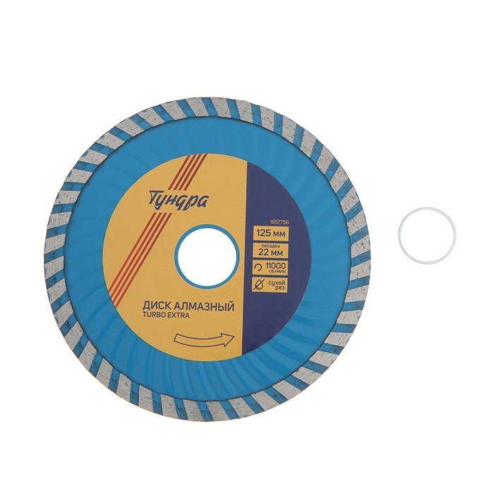 Диск алмазный отрезной ТУНДРА, TURBO Extra, сухой рез, 125 х 22 мм
