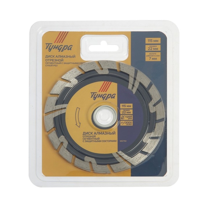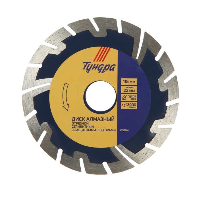 Диск алмазный отрезной ТУНДРА, сегментный с защитными секторами, сухой рез, 115 х 22 мм