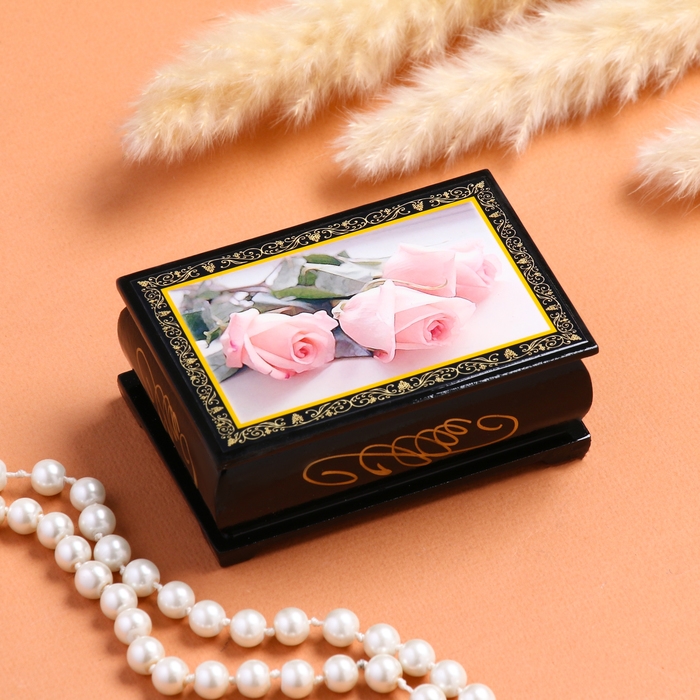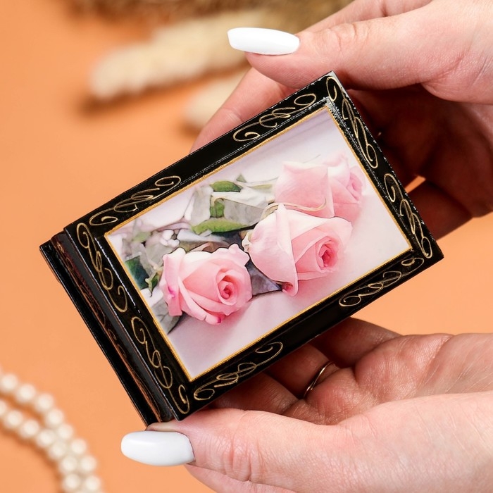 Шкатулка «Розовые розы», 6×9 см, лаковая миниатюра
