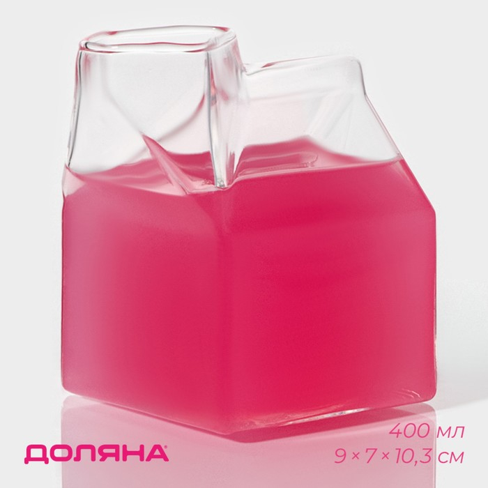 Молочник стеклянный Доляна «Пакет», 400 мл, 9×7×10,3 см