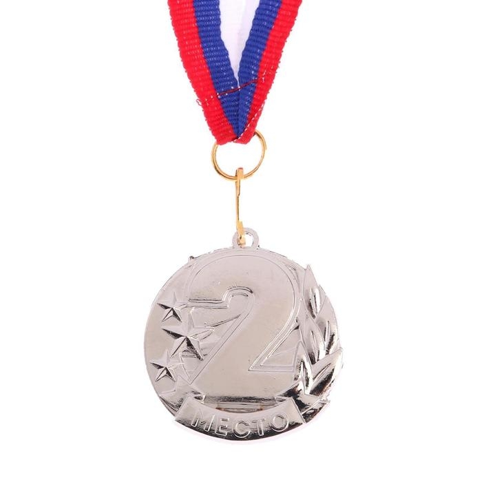 Медаль призовая 058, d= 5 см. 2 место. Цвет серебро. С лентой