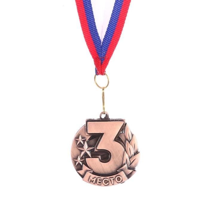 Медаль призовая 014, d= 7 см. 3 место, триколор. Цвет бронза. С лентой