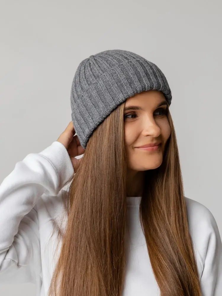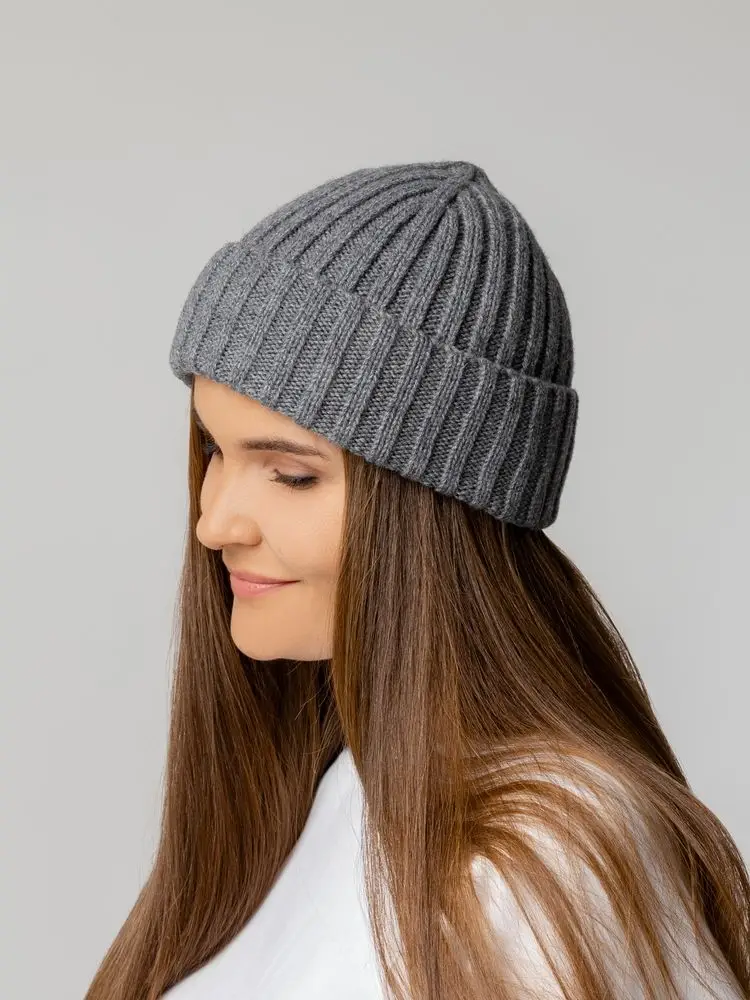 Модная шапка-бини, связанная резинкой, универсальна и подходит для самых непосредственных и легких образов.