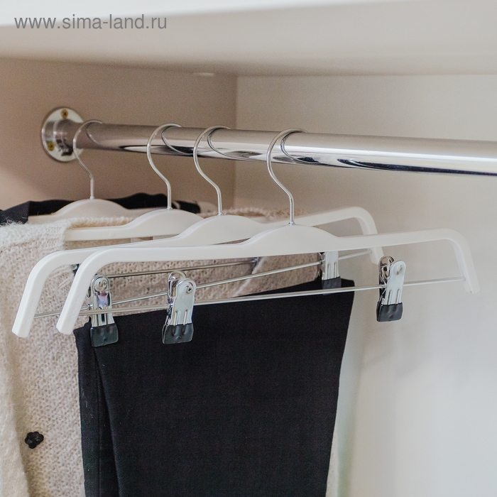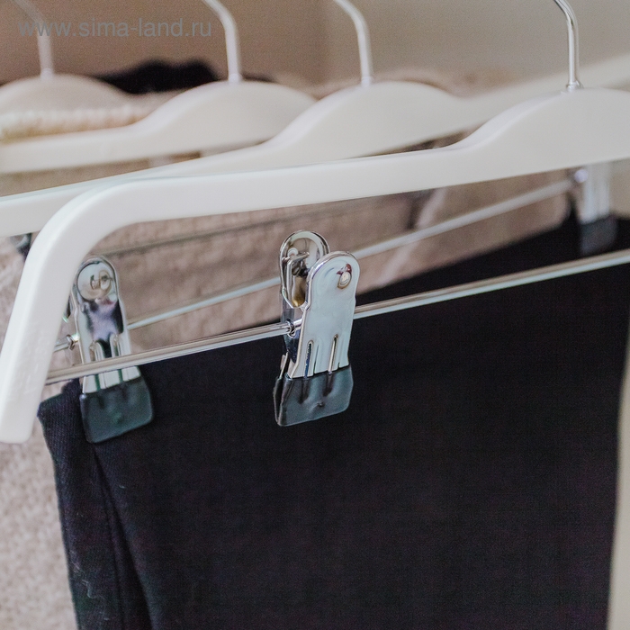Плечики - вешалка для брюк и юбок Доляна, 37×16 см, широкие плечики, с зажимами, цвет белый