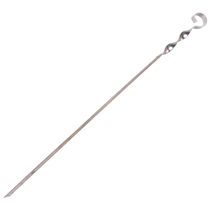 Шашлыки на шампурах — классическое и любимое угощение во время отдыха на природе. Стальная модель не нагревается, устойчива к воздействию кислот и солей. Шампур с витой ручкой держится в нужном положении, что позволяет правильно переворачивать и равномерно прожарить мясо.