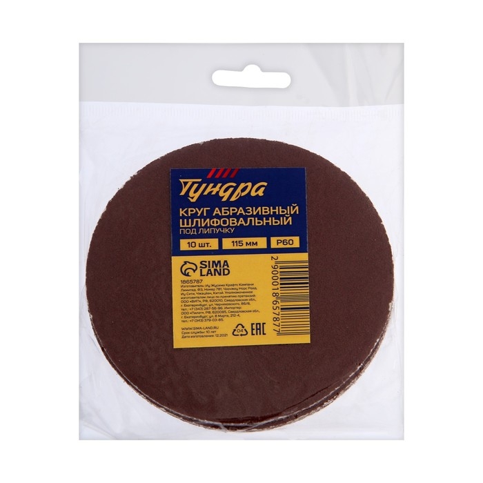 Круг абразивный шлифовальный под "липучку" ТУНДРА, 115 мм, Р60, 10 шт.