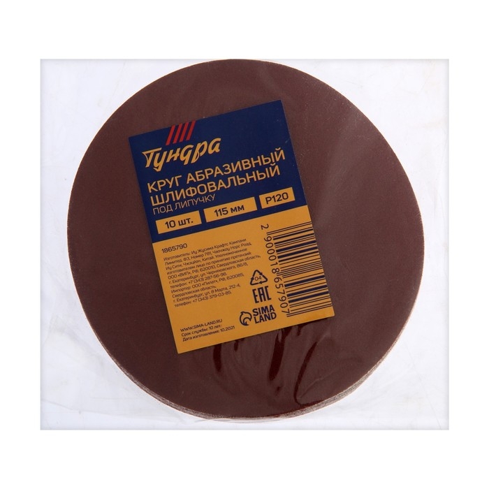 Круг абразивный шлифовальный под "липучку" ТУНДРА, 115 мм, Р120, 10 шт.