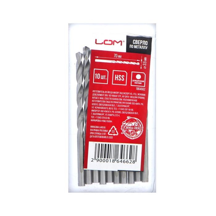 Сверло по металлу ЛОМ, HSS, цилиндрический хвостовик, 3.5 х 70 мм, 10 шт.