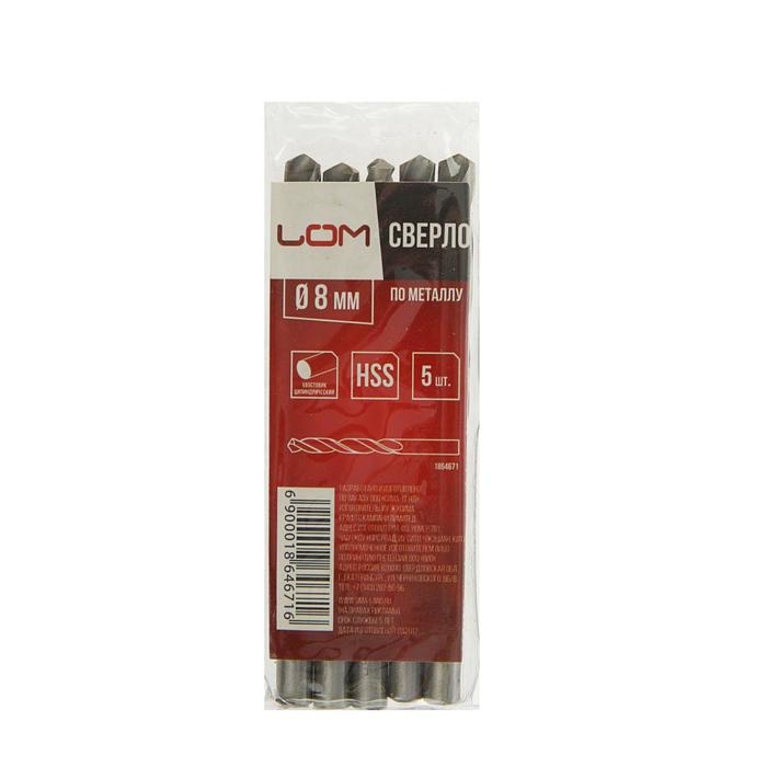 Сверло по металлу ЛОМ, HSS, цилиндрический хвостовик, 8 х 115 мм, 5 шт.
