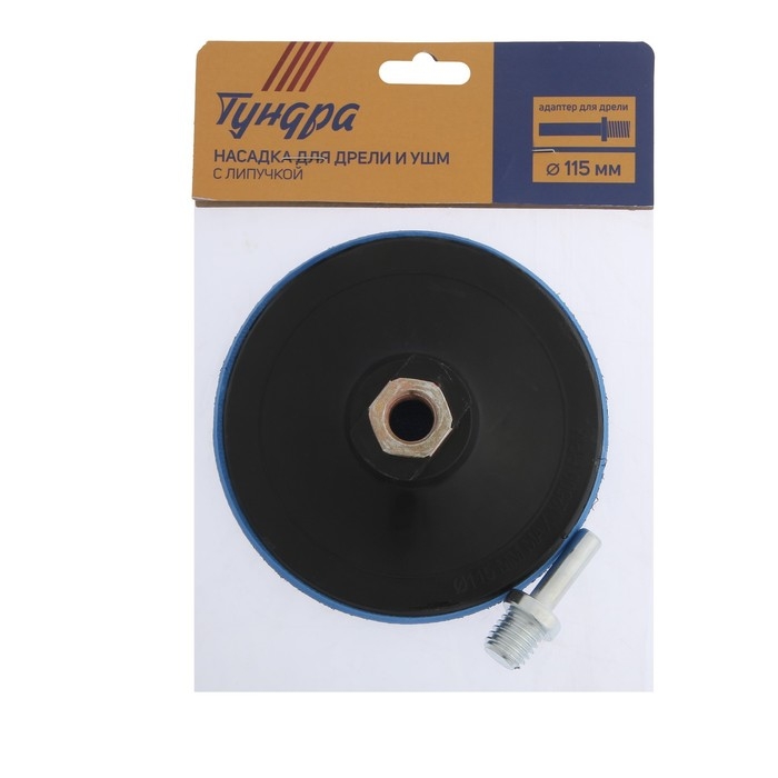 Насадка с липучкой для дрели и УШМ ТУНДРА, М14, с адаптером, 115 мм