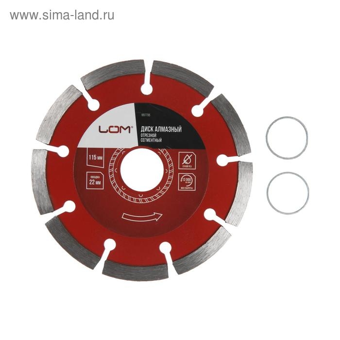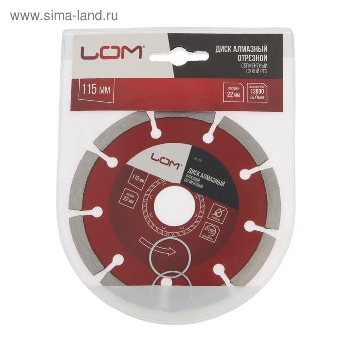Диск алмазный отрезной ЛОМ, сегментный, сухой рез, 115 х 22 мм