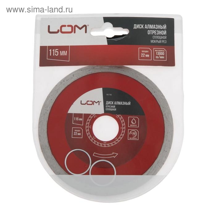 Диск алмазный отрезной ЛОМ, сплошной, мокрый рез, 115 х 22 мм