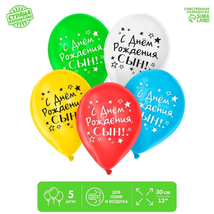 Воздушный шар латексный 12" «С днём рождения, сын», 5 шт.
