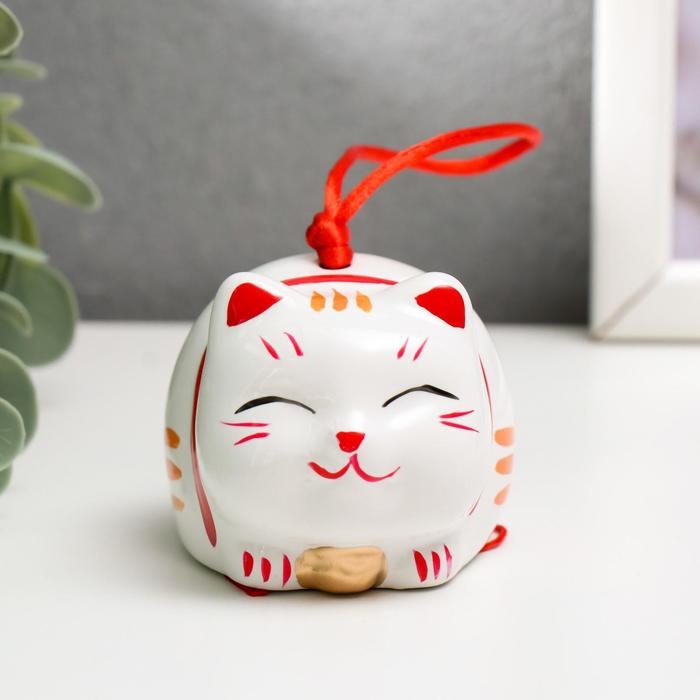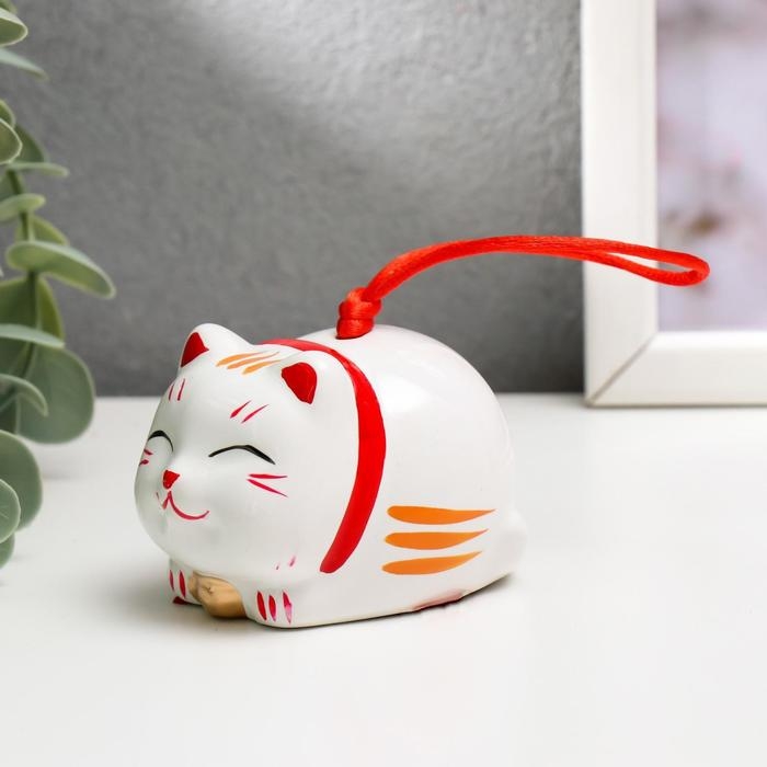 Сувенир керамика колокольчик "Манэки-нэко лежит" 5,7х5,5х5 см