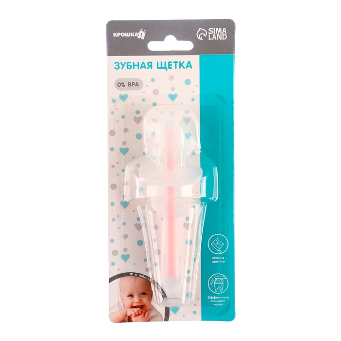 Прорезыватель для зубов детский, Крошка Я, щеточка, массажер для десен, грызунок для малыша, от 3 мес., цвет розовый.