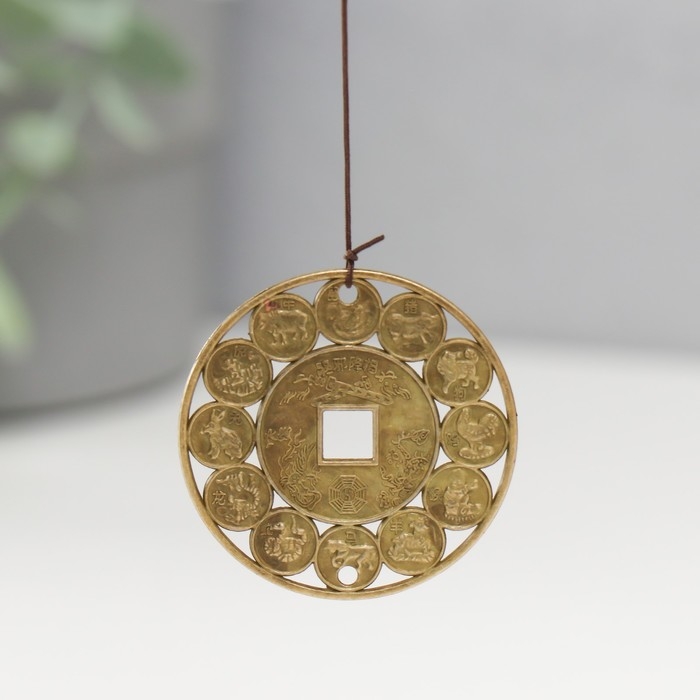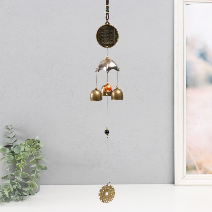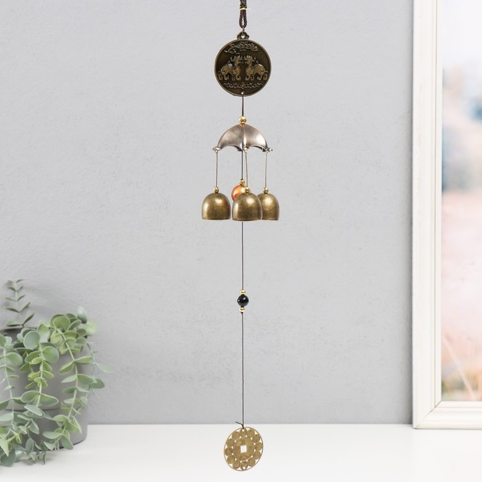 Музыка ветра "Дракон на монете" 3 колокольчика + 1 подвеска 46 см