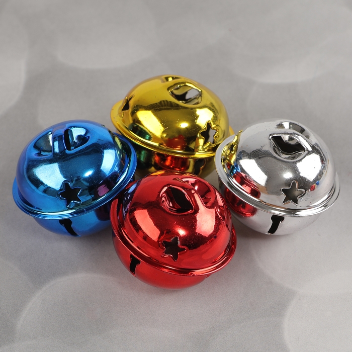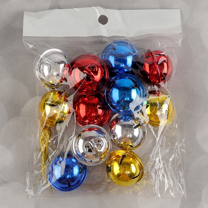 Бубенчики, набор 12 шт., размер 1 шт: 3×3 см, цвет красный, жёлтый, синий, серебряный