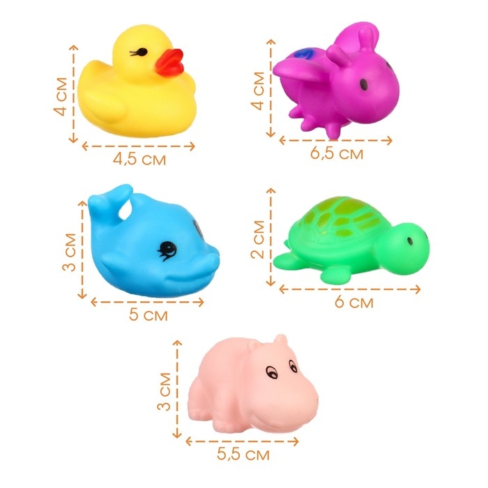 Набор резиновых игрушек для ванны «Маленькие друзья», с пищалкой, 5 шт, виды МИКС, Крошка Я