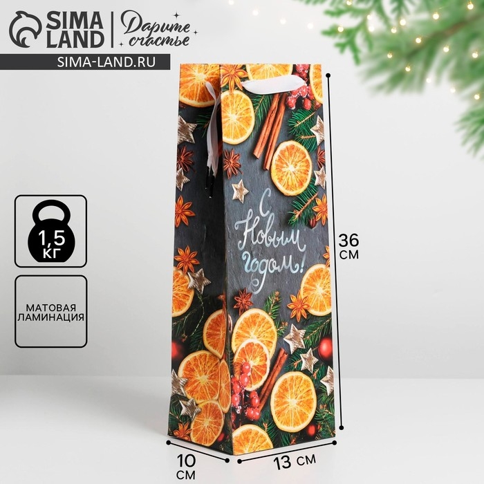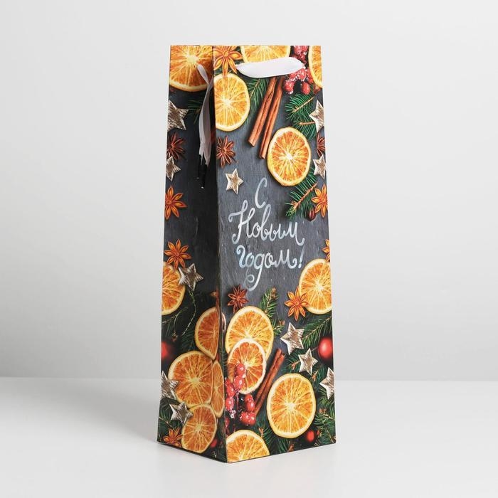 Пакет подарочный новогодний ламинированный под бутылку «Уюта и тепла в новом году», 13 x 36 x 10 см, Новый год
