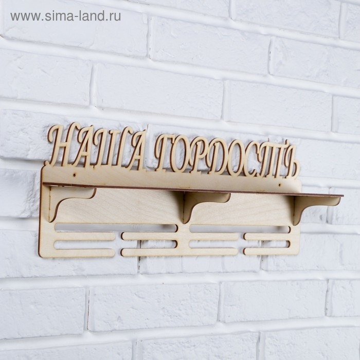 Медальница с полкой подходит для медалей и жетонов на лентах, а также для кубков и грамот. Медальница с полкой изготовлена из фанеры. Произведено в России.