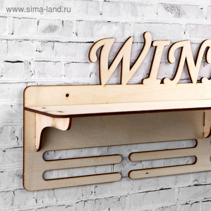 Медальница с полкой подходит для медалей и жетонов на лентах, а также для кубков и грамот. Медальница с полкой изготовлена из фанеры. Произведено в России.