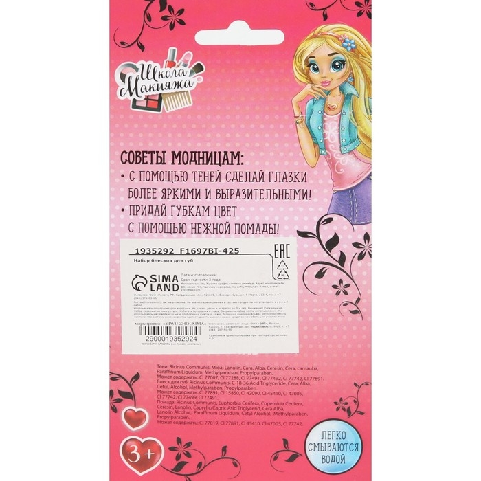 С набором блесков «Школа макияжа» маленькая принцесса может придать своим губкам нежный оттенок! Косметика легко наносится и смывается, так что девочка сможет безопасно экспериментировать со своим макияжем. Компактная упаковка имеет оригинальный дизайн — её можно взять куда угодно.