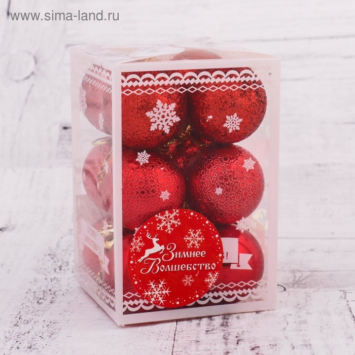 Набор шаров пластик d-4 см, 12 шт "Анданте" красный