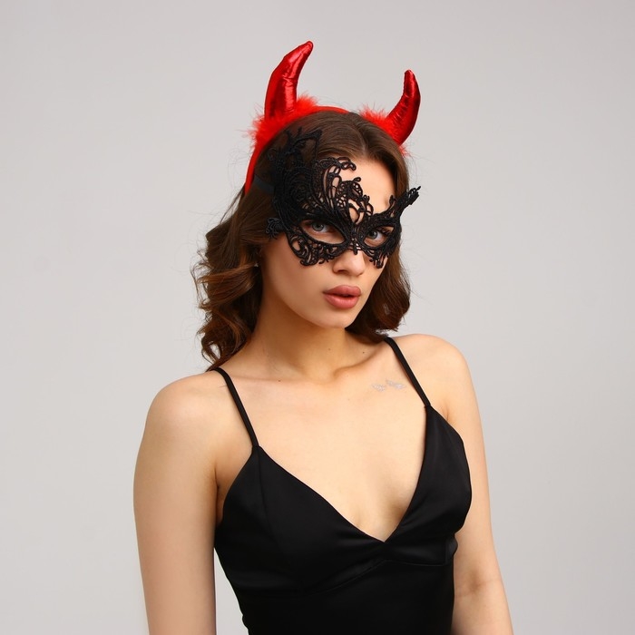 Хэллоуин. Карнавальный костюм чертика «Роковая красотка» (рожки+ маска)