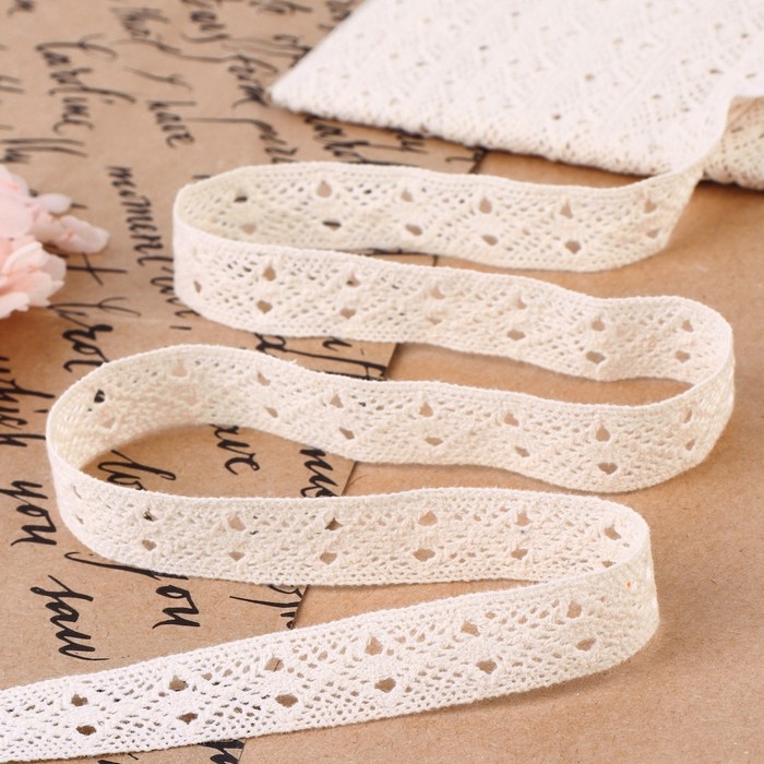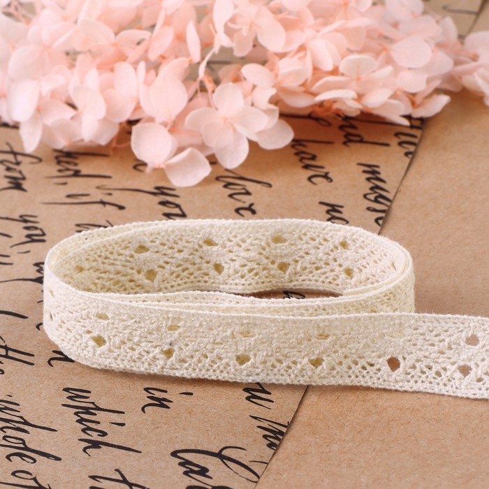 Кружево вязаное, 15 мм × 10 ± 1 м, цвет бежевый