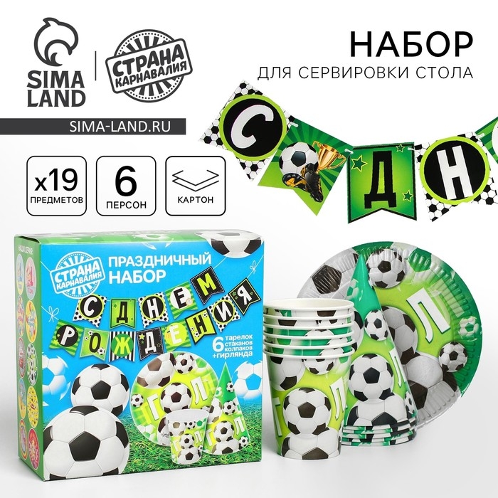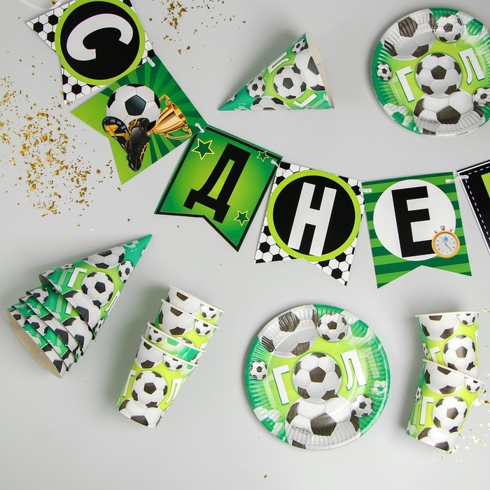 Набор бумажной посуды одноразовый С днём рождения. Мячики», 6 тарелок, 6 стаканов, 6 колпаков, 1 гирлянда