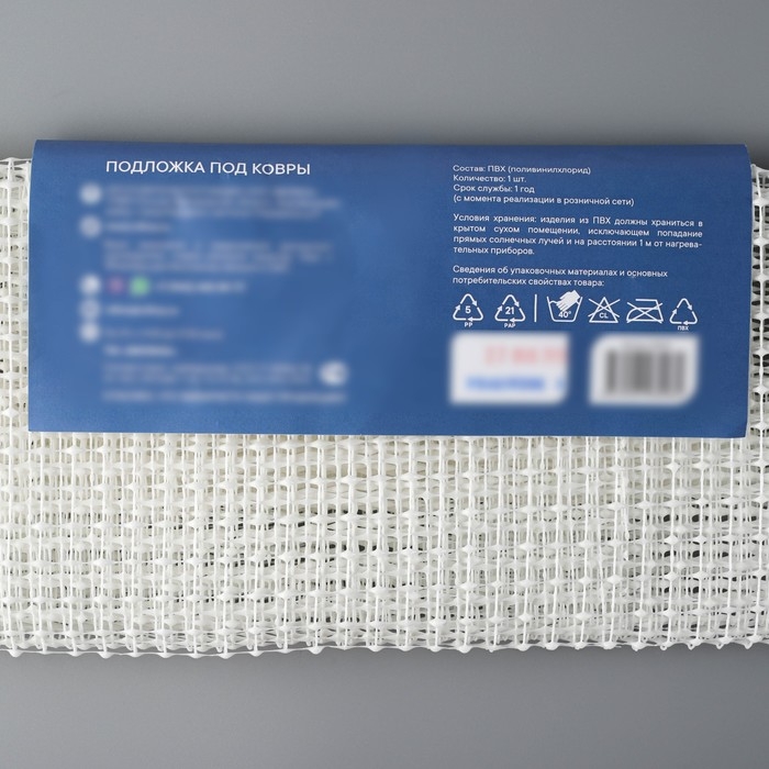 Подложка под ковёр противоскользящая 60×120 см, цвет белый