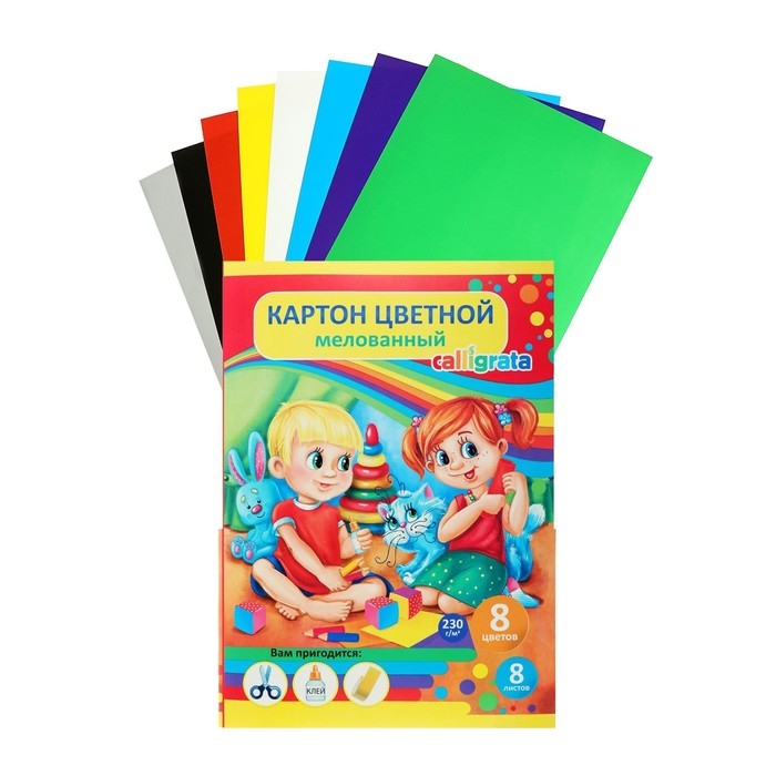 Картон цветной А3, 8 листов, 8 цветов "Друзья", мелованный, 230 г/м2, в папке