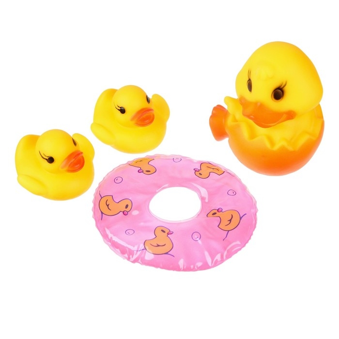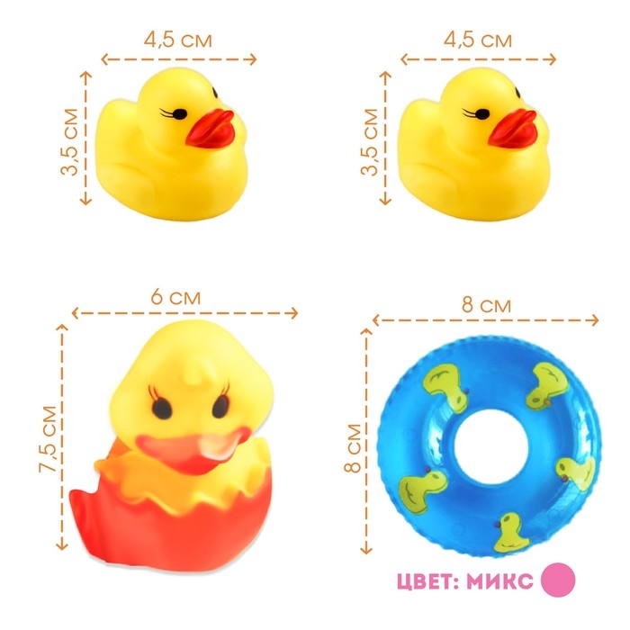 Набор резиновых игрушек для ванны «Утята с кругом», 8 см, с пищалкой, 4 шт., цвет МИКС, Крошка Я