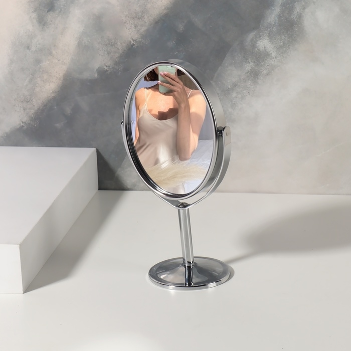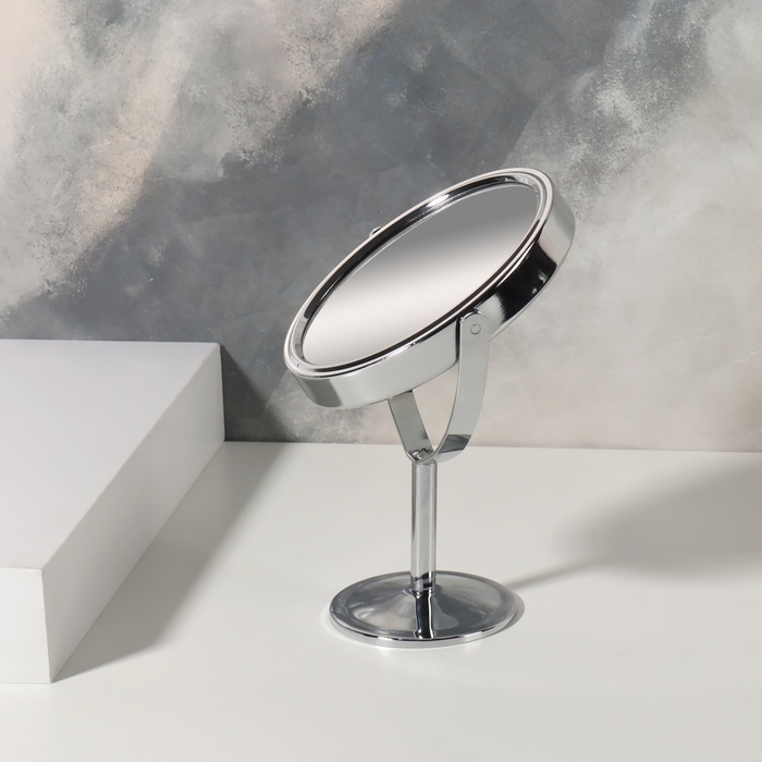 Зеркало на ножке, двустороннее, с увеличением, зеркальная поверхность 8 × 9,5 см, цвет серебристый