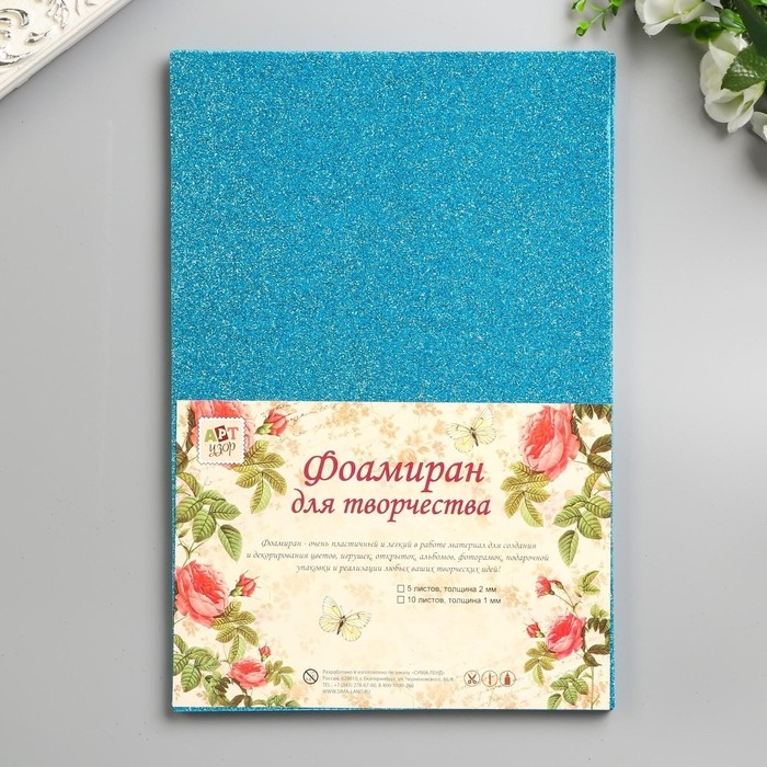 Фоамиран "Голубой блеск" 2 мм формат А4 (набор 5 листов)